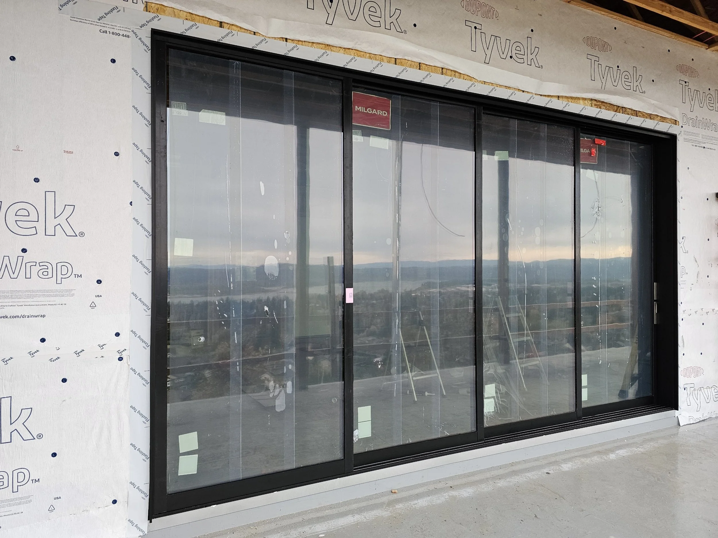 Fresh install of a 16’ 4 panel western window systems door. All aluminum frame with a sleek black exterior